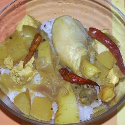 "This is a relatively hot curry which is usually served during Christmas and other special occasions by the Cristao (pronounced Cristang) community in Malacca, Malaysia. They are descendants of the Portuguese invaders who married locals during their reign in Malaysia. This recipe uses candlenuts and galangal; candlenuts are hard tropical nuts used in Southeast Asian cooking and available in Indian or Asian markets. Galangal is a rhizome similar to ginger with a hot, ginger-peppery flavor, used primarily as a seasoning. It is also available in Asian markets."