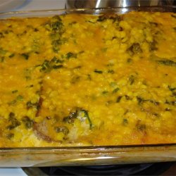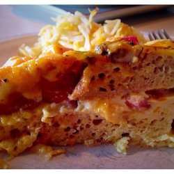 3Line bottom with 6 slices of bread. Scatter half of the ham, and half of the mushrooms over the bread, then sprinkle with half of the scallions and cheese. Pour 1 cup of egg mixture over the top. Repeat layers with remaining bread, ham, mushrooms, cheese and scallions. Slowly pour remaining egg mixture evenly over top. Cover with plastic wrap, then weight down casserole with 3 16-ounce cans for at least 15 minutes to submerge ingredients. (Can be refrigerated overnight, but return to room temperature before baking.)
