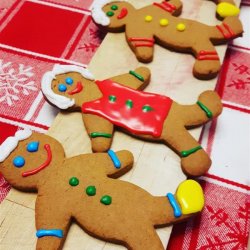 2Preheat the oven to 350 degrees F (175 degrees C). Grease baking sheets. On a floured board, roll dough out to about 1/8 inch thickness, and cut into man shapes using a cookie cutter. Place cookies 2 inches apart on the prepared baking sheets.