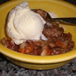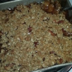 2In a large bowl, combine brown sugar, oats, flour and butter. Mix until crumbly. Place half of crumb mixture in pan. Spread the apples evenly over crumb mixture. Sprinkle with sugar and cinnamon and top with remaining crumb mixture.