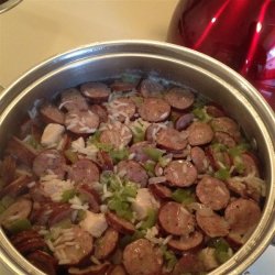 "This Jambalaya pleases every one from picky kids to the even pickier dads, total time from start to finish is about 40 minutes, and a big plus ONLY ONE BIG POT TO CLEAN! This is very filling and is great heated up in a skillet the next day."