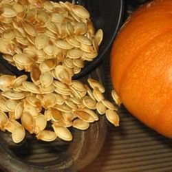 "This is what you can do with all those seeds after the Jack O' Lantern is carved! Any seasoning will work in place of salt. Try Cajun!"