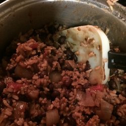 1In a large saucepan, cook and stir onion in oil until tender and translucent, but not brown. Add tomatoes, beans, oregano and garlic powder. Bring to boil. Stir in rice, return mixture to a boil. Reduce heat to simmer, and cover.
