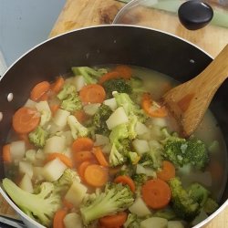 2Pour the remaining 4 cups vegetable broth into a large pot; add potatoes and onion. Bring to a simmer, cover, and cook for 5 minutes. Stir in broccoli and basil; return to a simmer. Cover and cook until potatoes are tender, about 10 minutes.