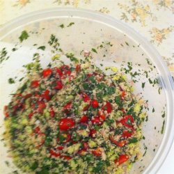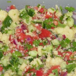 2Mix tomatoes, cucumber, onion, parsley, mint, lemon juice, olive oil, and black pepper into couscous. Serve immediately or refrigerate for 1 hour for flavors to blend.