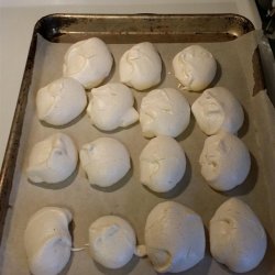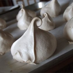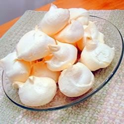 2In a large clean glass or metal bowl, whip the egg whites with salt and cream of tartar until they can hold a soft peak. Gradually sprinkle in the sugar while continuing to whip to stiff peaks. Fold in the lemon zest. Drop by heaping spoonfuls onto the prepared baking sheets.