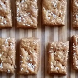 6Roll dough out on a floured work surface to about 1/8-inch thick. Use a pizza cutter to cut 1-inch wide strips from the dough. Cut strips crosswise into rectangles about 1 1/2-inches long. Use the back of a bamboo skewer to punch 5 small holes into each cracker. Arrange crackers onto prepared baking sheet.