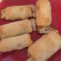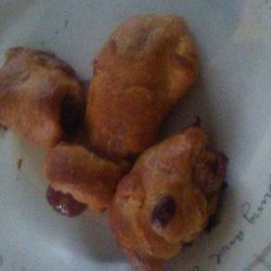 2Wrap cheese around each frankfurter then the biscuit around that. Put on cookie sheet with the overlap of biscuit faced down, so you don't have to use tooth picks.