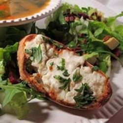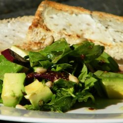 "'Tartine' is the French word for a slice of bread with a topping. Spread herbed goat cheese on crusty bread and toss together beets, avocadoes and greens for an usual, beautiful meal that combines warm with cool, bitter with sweet, and creamy with crisp."