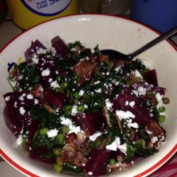 "Very different from a regular salad. This is a salad my whole family enjoys, including my 8- and 9-year old. Peas are readily available all year round; when it's in season, I have also used asparagus, zucchini, green or wax beans. It's also nice to put some fresh cracked pepper over it when it is done. I have tried this recipe with canned beets. It does not come out nearly as well, the beets are way to soft."