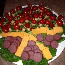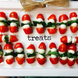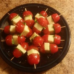 "A great way to serve tomato mozzarella salad. Great presentation; always a hit! You can find the bite-sized mozzarella ('Bocconcini') at most supermarkets. If they are on the larger side, cut them in half."