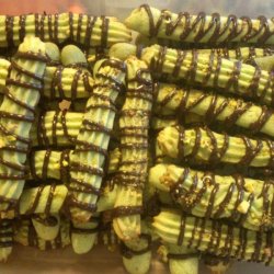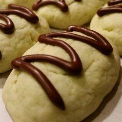 "These are tender and delicately flavored cookies - the light green color and chocolate drizzle make them stand out on a cookie tray. Nice for holidays or bridal showers."