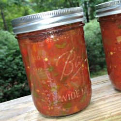 "This is a recipe I came up with by combining two of my favorite recipes into one awesome recipe. You can make this salsa as hot as you want by adding more peppers."