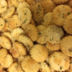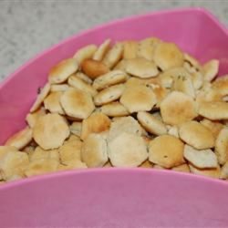 2In a large bowl, combine the dressing mix, dill weed, vegetable oil, lemon pepper, and garlic powder. Add oyster crackers, and toss to coat. Spread evenly on a baking sheet.