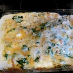 "I made up this recipe because my hubby wanted to try a lasagna made with lobster meat. I combine tender steamed Maine lobster chunks in between pasta, jarred or homemade Alfredo Sauce and fresh spinach and ricotta, Cheddar and Parmesan cheeses. Serve with a tossed garden salad and oven toasted garlic bread."