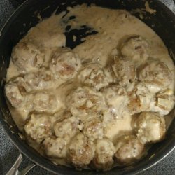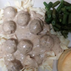 "A quick but very tasty sauce to add to already prepared frozen meatballs. This recipe makes a generous amount of sauce for a 1/2 package (20 oz) of meatballs. Serve over egg noodles or rice."