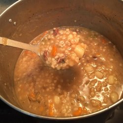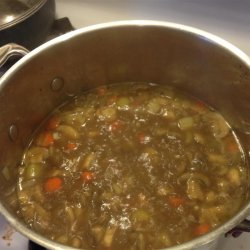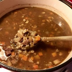 3Add meat, 6 cups water, bouillon cubes, and barley to vegetable mixture. Cook until barley is soft, about 1 hour. Adjust liquid and seasoning as desired. Remove from heat, and stir in sour cream. Serve immediately.