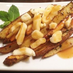 3Bake in the preheated oven until fries are crisp and browned, 40 to 60 minutes. Sprinkle cheese curds over fries and top with gravy.