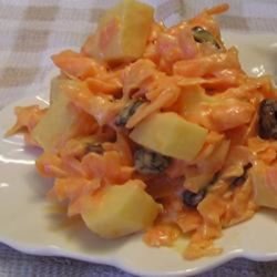 In a mixing bowl, combine the carrots, celery, raisins, mayonnaise and vinegar. Mix together and refrigerate until chilled.