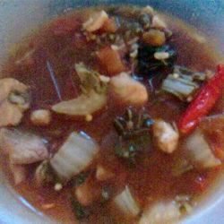 1In a medium pot, combine the tilapia, bok choy, tomatoes and radish. Stir together the tamarind paste and water; pour into the pot. Toss in the chili peppers if using. Bring to a boil, and cook for 5 minutes, or just until the fish is cooked through. Even frozen fish will cook in less than 10 minutes. Do not over cook or else the fish will fall apart. Ladle into bowls to serve.