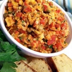 "Roasted red peppers, artichoke hearts and garlic are the main flavors in this bright tapenade. This simple recipe can be used as a dip for vegetables and pita triangles or as a sandwich spread."