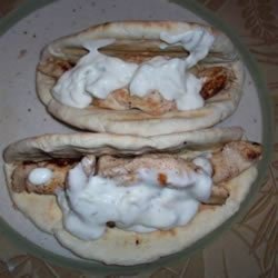 4Place sliced chicken, tomato, onion, and lettuce onto pita breads. Roll up, and top with the tahini sauce.