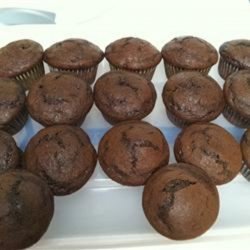 2In medium bowl, Sift together flour, cocoa, sugar, baking powder, baking soda and salt. In large bowl stir in milk, egg, oil and vanilla. Mix dry ingredients to large bowl; beat well. Add chocolate chips and walnuts, stir well.