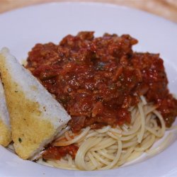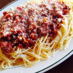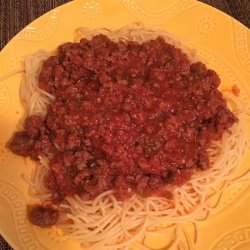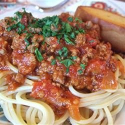 "This sauce came from a good friend's Italian mother-in-law. It is easy, and by far the best homemade sauce I know of. Great for both spaghetti and lasagna. Pssst...the secret is the sugar! Also, as I am now vegetarian, it tastes great with out the meat! Just substitute two tablespoons olive oil for the beef."