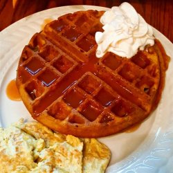 3Stir the flour mixture and 1/4 cup melted butter to the pumpkin mixture, stirring just to combine. Use a whisk or rubber spatula to fold 1/3 of the egg whites into the batter, stirring gently until incorporated. Fold in the remaining egg whites. Cook waffles according to manufacturer's instructions.