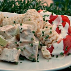 "This recipe serves fifty people! Cooked chicken breast and lemon penne pasta tossed with a creamy buttermilk and dill mixture. A simple and scrumptious solution for those large gatherings with fifty of your closest friends!"