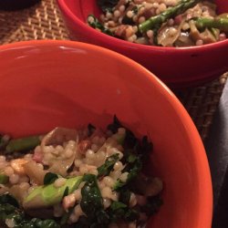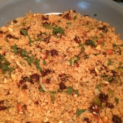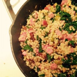 4Mix ham, dates, almonds, olives, parsley, salt, and pepper into couscous mixture; cook and stir until heated through, 2 to 3 minutes.