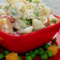 2Stir the sour cream, mayonnaise, lemon juice, lemon zest, dried dill, cayenne pepper, and salt until smooth. Fold in the onion, peas, ham, Cheddar cheese, and bow tie pasta. Garnish with the dill sprigs to serve.