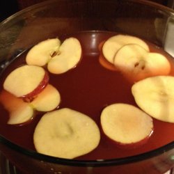 Thinly slice the apple vertically, forming whole apple slices. Float apple slices on top of punch.