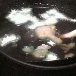 2Stir together grape soft drink mix, orange soft drink mix, sugar and water until solids are dissolved. Combine with chilled ginger ale just before serving. Dip the frozen hand briefly in warm water, then peel off the glove. Float the prepared hand in the punch bowl for a ghastly effect.