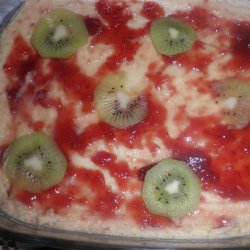2In a large bowl, mix the whipped topping powder as directed on package and beat until thick. Cut the cream cheese into small cubes and drop them into the whipped topping, one at a time, while beating. Pour in the cherry brandy and beat another 5 minutes at high speed.