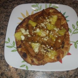 4Roll out pizza dough on a 16 inch pizza pan. Bake dough for approximately 7 minutes, and then remove from oven. Brush dough with a thin layer of teriyaki sauce, then a layer of the onion, and top with Cheddar cheese. Then top with chicken, reserved pineapple chunks, and feta cheese. Bake for an additional 15 minutes, or until cheese is bubbly and slightly browned.