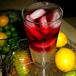 2To prepare the drinks, fill 4 glasses with ice cubes and pour 1 cup of lemonade into each glass. Carefully pour 1 cup of cooled tea into each glass so that it floats on the lemonade.