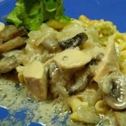 3Stir cream of mushroom soup, chicken broth, and Marsala wine together in a large bowl. Stir mushroom mixture into soup mixture.