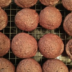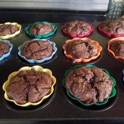 3In a separate bowl, stir together flour, cocoa, baking soda, and cinnamon, if desired. Add to butter mixture, blending well. Stir in chocolate chips. Fill muffin cups 3/4 full with batter.