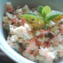 "This is our favorite cole slaw recipe, a yummy combo of fruit and veggies in a sweet dressing."
