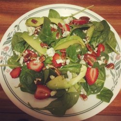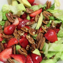 2Place the salad greens in a pretty bowl, and top with sliced avocado and strawberries. Drizzle dressing over everything, then sprinkle with pecans. Refrigerate for up to 2 hours before serving, or serve immediately.