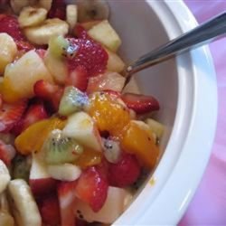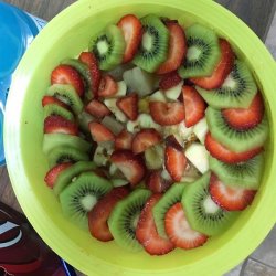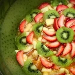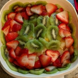 6Arrange kiwi slices around the edge of the serving bowl and alternate with strawberry slices. Chill and serve.