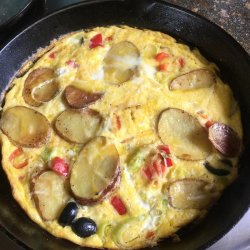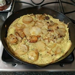 "Tortilla Espanola is a dish I make all the time at home. My boyfriend's family are Spanish, and he just loves this authentic dish. It's easy to prepare and always a crowd pleaser. Traditionally this dish only uses only onions, potatoes and egg; however I like to add a little green, either parsley or chives depending on your taste. They're both wonderful."