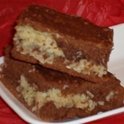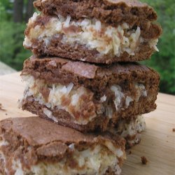 "These decadent brownies have a delicious layer of coconut sandwiched between two chocolate layers. They were requested at a political campaign, at a social party and at my fiftieth anniversary."