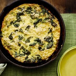 4Blend eggs, spreadable cheese, and salt in a blender until smooth. Pour egg mixture evenly over spinach mixture. Stir spinach mixture gently with a fork to allow egg mixture to flow underneath. Sprinkle top with Parmesan cheese.
