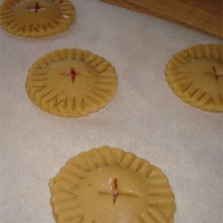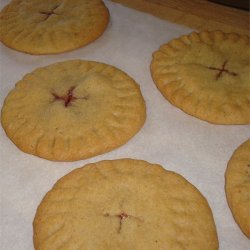 5Roll dough to a 1/8-inch thickness on a floured surface; cut into 2-inch rounds using a cookie cutter. Spoon 1 teaspoon preserves into the center of half the cookies; cover with remaining cookies. Lightly press edges of cookies together using a fork. Cut criss-cross slits into the top of each cookie using a knife. Arrange cookies on an ungreased baking sheet.