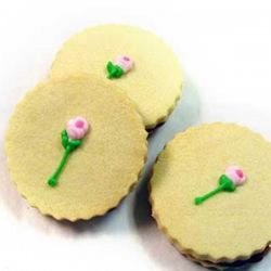 3On a lightly floured surface roll out the dough to 1/8 inch thick. Cut with a 2 inch round cookie cutter. Place on ungreased baking sheets.