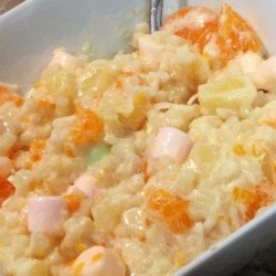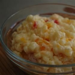 3In a large bowl, combine the pasta, egg mixture, mandarin oranges, pineapple and whipped topping. Mix well and refrigerate overnight or until chilled. Before serving add marshmallows and coconut. Toss and serve.