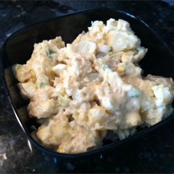 3In a small bowl, combine lemon juice, oil, sugar, seasoned salt, Worcestershire sauce, mustard powder and black pepper; mix well. Blend in mayonnaise. Pour lemon dressing over potatoes, and stir to coat.