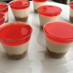 4Mix strawberry gelatin and 1/4 cup boiling water together in a bowl; stir well and add remaining 1/2 cup vodka and ice cubes. Stir until ice melts and mixture starts to thicken; pour over cream cheese mixture layer. Chill shots for at least 30 minutes.